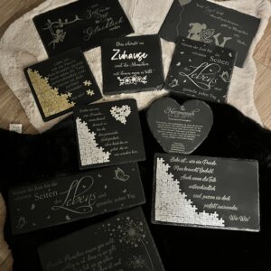 Schiefertafel mit Text + Bild