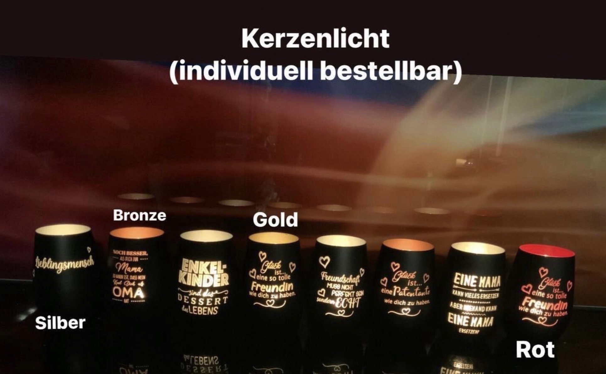 | Kerzenglas | 1, 2, 3, 4, 5, 6, 7, 8 |